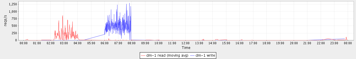 avg(dm-1 read) = 433.65 avg(dm-1 write) = 164.32
