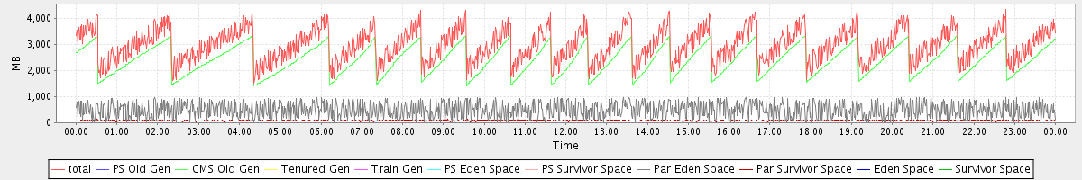 avg(total) = 2977.83 avg(PS Old Gen) = 0.00 avg(CMS Old Gen) = 2403.35 avg(Tenured Gen) = 0.00 avg(Train Gen) = 0.00 avg(PS Eden Space) = 0.00 avg(PS Survivor Space) = 0.00 avg(Par Eden Space) = 492.81 avg(Par Survivor Space) = 81.66 avg(Eden Space) = 0.00 avg(Survivor Space) = 0.00