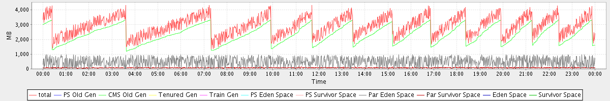 avg(total) = 2921.35 avg(PS Old Gen) = 0.00 avg(CMS Old Gen) = 2355.29 avg(Tenured Gen) = 0.00 avg(Train Gen) = 0.00 avg(PS Eden Space) = 0.00 avg(PS Survivor Space) = 0.00 avg(Par Eden Space) = 485.38 avg(Par Survivor Space) = 80.67 avg(Eden Space) = 0.00 avg(Survivor Space) = 0.00