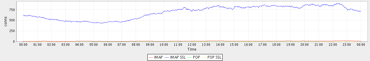 avg(IMAP) = 13.10 avg(IMAP SSL) = 689.30 avg(POP) = 0.01 avg(POP SSL) = 1.92