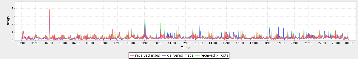 avg(received msgs) = 0.34 avg(delivered msgs) = 0.30 avg(received x rcpts) = 0.40