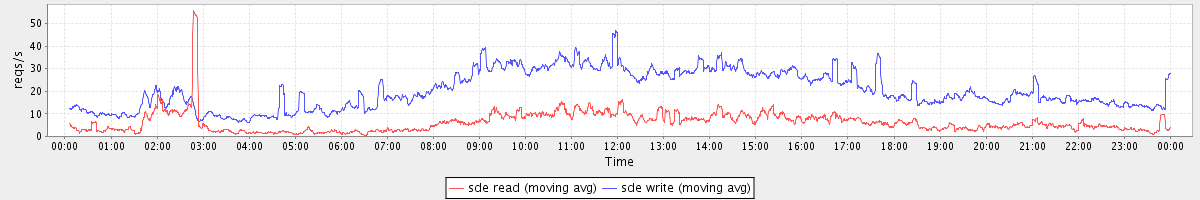 avg(sda1 read) = 14.73 avg(sda1 write) = 258.59