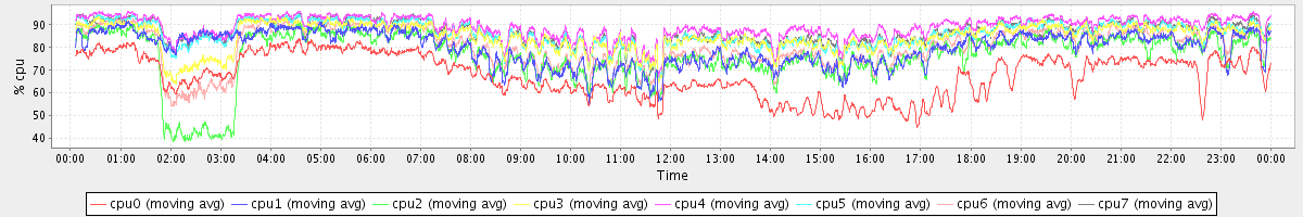 avg(cpu0) = 67.82 avg(cpu1) = 79.83 avg(cpu2) = 76.25 avg(cpu3) = 84.78 avg(cpu4) = 89.16 avg(cpu5) = 86.19 avg(cpu6) = 80.34 avg(cpu7) = 86.78