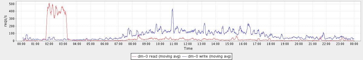 avg(dm-0 read) = 1135.74 avg(dm-0 write) = 295.76