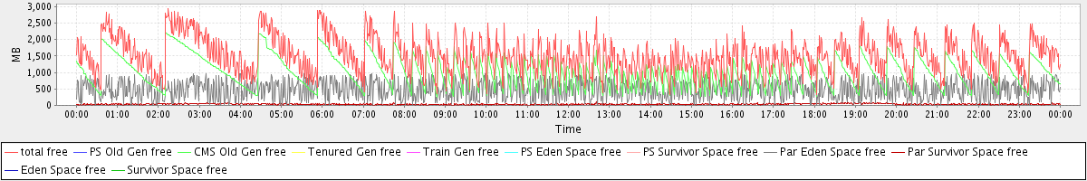 avg(total free) = 1517.25 avg(PS Old Gen free) = 0.00 avg(CMS Old Gen free) = 1005.09 avg(Tenured Gen free) = 0.00 avg(Train Gen free) = 0.00 avg(PS Eden Space free) = 0.00 avg(PS Survivor Space free) = 0.00 avg(Par Eden Space free) = 477.20 avg(Par Survivor Space free) = 34.96 avg(Eden Space free) = 0.00 avg(Survivor Space free) = 0.00