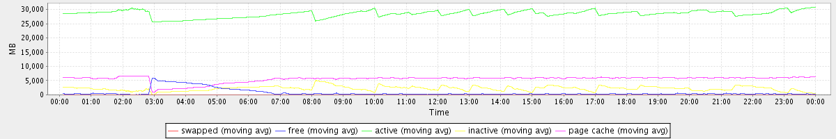 avg(swapped) = 0.40 avg(free) = 721.39 avg(active) = 28522.20 avg(inactive) = 2209.28 avg(page cache) = 5533.99