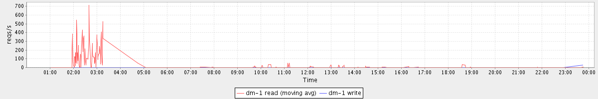 avg(dm-1 read) = 5.80 avg(dm-1 write) = 0.03