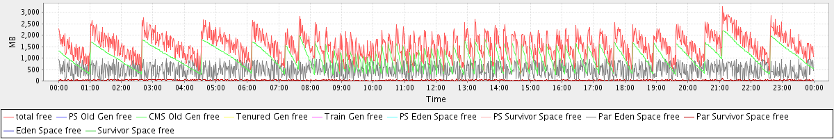 avg(total free) = 1550.44 avg(PS Old Gen free) = 0.00 avg(CMS Old Gen free) = 1028.81 avg(Tenured Gen free) = 0.00 avg(Train Gen free) = 0.00 avg(PS Eden Space free) = 0.00 avg(PS Survivor Space free) = 0.00 avg(Par Eden Space free) = 488.12 avg(Par Survivor Space free) = 33.50 avg(Eden Space free) = 0.00 avg(Survivor Space free) = 0.00