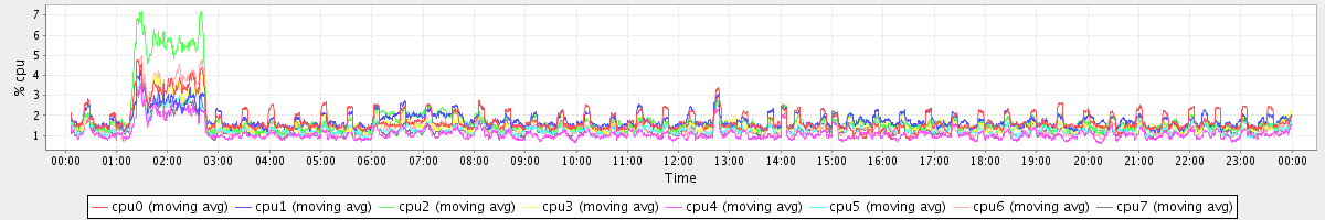 avg(cpu0) = 0.05 avg(cpu1) = 0.01 avg(cpu2) = 0.03 avg(cpu3) = 0.00 avg(cpu4) = 0.00 avg(cpu5) = 0.00 avg(cpu6) = 0.01 avg(cpu7) = 0.00