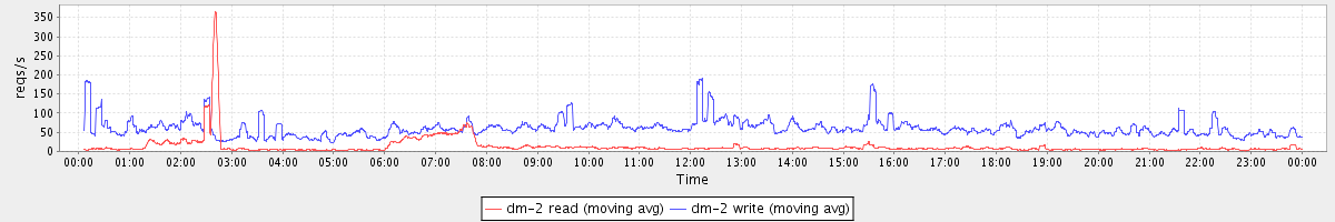 avg(dm-1 read) = 631.79 avg(dm-1 write) = 134.00