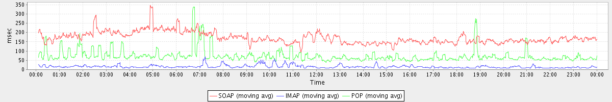 avg(SOAP) = 170.88 avg(IMAP) = 15.82 avg(POP) = 73.99
