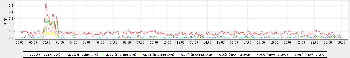 avg(cpu0) = 0.08 avg(cpu1) = 0.01 avg(cpu2) = 0.02 avg(cpu3) = 0.00 avg(cpu4) = 0.00 avg(cpu5) = 0.00 avg(cpu6) = 0.01 avg(cpu7) = 0.00