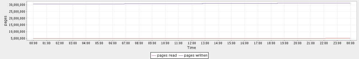 avg(pages read) = 5039991.50 avg(pages written) = 30928741.45