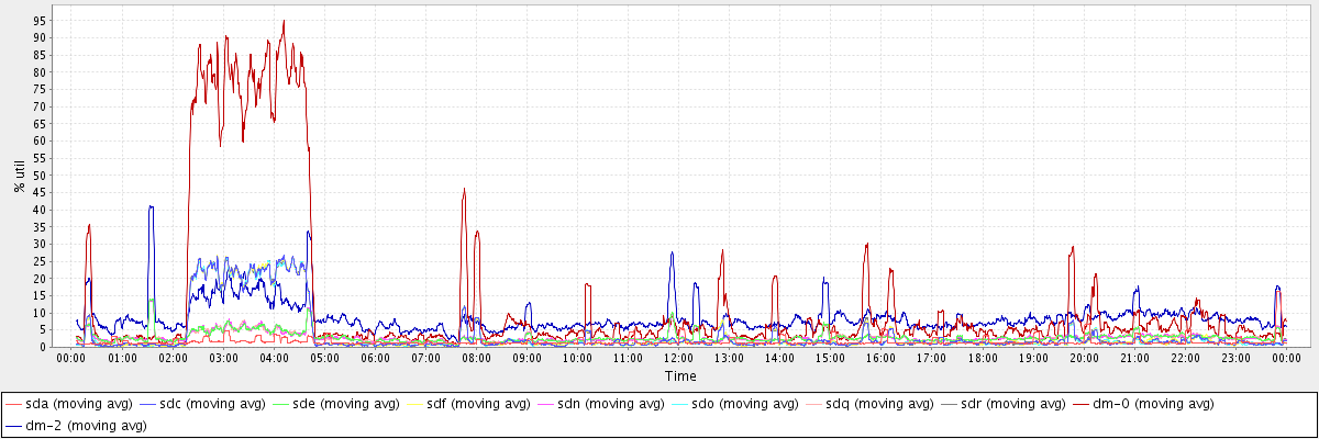 avg(sda) = 1.62 avg(sdc) = 3.59 avg(sde) = 2.91 avg(sdf) = 3.57 avg(sdn) = 2.91 avg(sdo) = 3.56 avg(sdq) = 2.91 avg(sdr) = 3.61 avg(dm-0) = 13.06 avg(dm-2) = 8.65