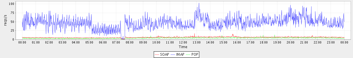 Host zm07.stanford.edu: Mailboxd: Request Rate by Client Protocol