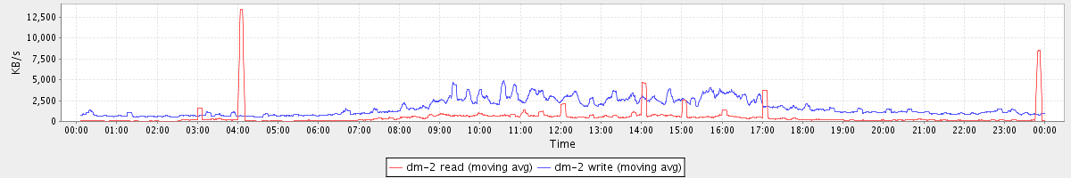avg(dm-2 read) = 499.81 avg(dm-2 write) = 1652.33