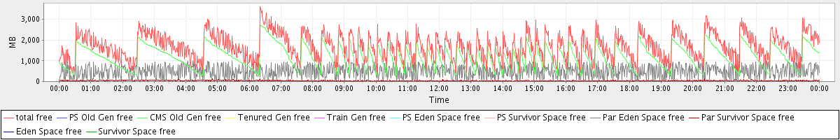 avg(total free) = 1696.72 avg(PS Old Gen free) = 0.00 avg(CMS Old Gen free) = 1174.35 avg(Tenured Gen free) = 0.00 avg(Train Gen free) = 0.00 avg(PS Eden Space free) = 0.00 avg(PS Survivor Space free) = 0.00 avg(Par Eden Space free) = 484.72 avg(Par Survivor Space free) = 37.65 avg(Eden Space free) = 0.00 avg(Survivor Space free) = 0.00