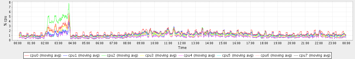 avg(cpu0) = 0.11 avg(cpu1) = 0.02 avg(cpu2) = 0.04 avg(cpu3) = 0.00 avg(cpu4) = 0.00 avg(cpu5) = 0.00 avg(cpu6) = 0.02 avg(cpu7) = 0.00