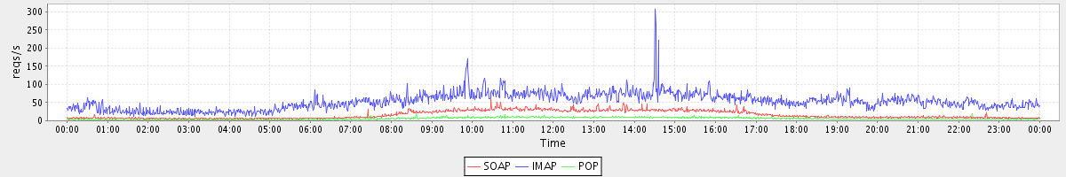 Host zm09.stanford.edu: Mailboxd: Request Rate by Client Protocol