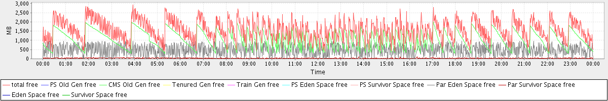 avg(total free) = 1562.85 avg(PS Old Gen free) = 0.00 avg(CMS Old Gen free) = 1051.57 avg(Tenured Gen free) = 0.00 avg(Train Gen free) = 0.00 avg(PS Eden Space free) = 0.00 avg(PS Survivor Space free) = 0.00 avg(Par Eden Space free) = 480.68 avg(Par Survivor Space free) = 30.60 avg(Eden Space free) = 0.00 avg(Survivor Space free) = 0.00