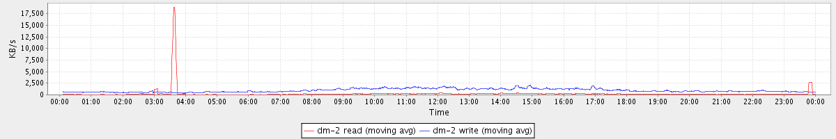 avg(dm-2 read) = 19.58 avg(dm-2 write) = 158.52