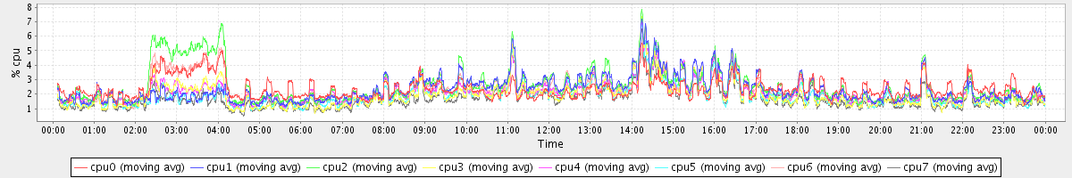 avg(cpu0) = 2.37 avg(cpu1) = 2.32 avg(cpu2) = 2.60 avg(cpu3) = 1.95 avg(cpu4) = 2.15 avg(cpu5) = 1.92 avg(cpu6) = 2.33 avg(cpu7) = 1.71