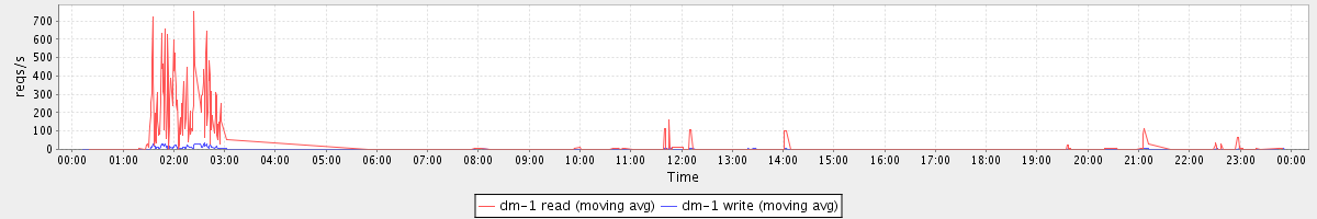 avg(dm-1 read) = 481.53 avg(dm-1 write) = 3.45