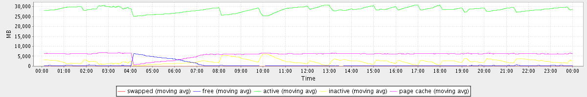 avg(swapped) = 0.25 avg(free) = 691.84 avg(active) = 28471.70 avg(inactive) = 2325.62 avg(page cache) = 5815.43