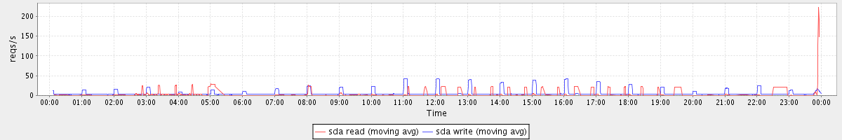 avg(sda1 read) = 21.65 avg(sda1 write) = 398.37