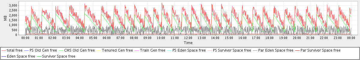 avg(total free) = 1789.25 avg(PS Old Gen free) = 0.00 avg(CMS Old Gen free) = 1222.85 avg(Tenured Gen free) = 0.00 avg(Train Gen free) = 0.00 avg(PS Eden Space free) = 0.00 avg(PS Survivor Space free) = 0.00 avg(Par Eden Space free) = 469.72 avg(Par Survivor Space free) = 96.69 avg(Eden Space free) = 0.00 avg(Survivor Space free) = 0.00