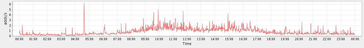 max(MsgActionRequest.move) = 239.00 max(SearchRequest) = 100.00 max(MsgActionRequest.delete) = 1036.00 max(NoOpRequest) = 156.00 max(MsgActionRequest.update) = 84.00 max(ModifyContactRequest) = 191.00 max(GetFolderRequest) = 1288.00 max(SyncRequest) = 820.00 max(GetEffectiveFolderPermsRequest) = 67.00 max(GetAppointmentRequest) = 371.00