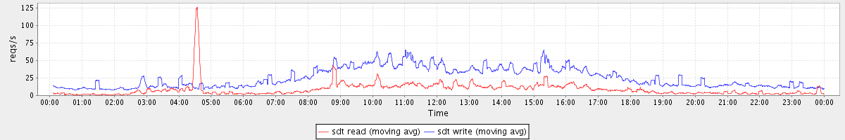avg(sda read) = 1.29 avg(sda write) = 5.28