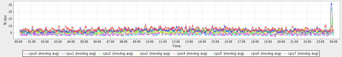 avg(cpu0) = 1.03 avg(cpu1) = 0.76 avg(cpu2) = 0.71 avg(cpu3) = 0.63 avg(cpu4) = 0.42 avg(cpu5) = 0.37 avg(cpu6) = 0.41 avg(cpu7) = 0.38