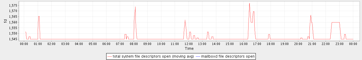 avg(total system file descriptors open) = 1546.55 avg(mailboxd file descriptors open) = 0.00