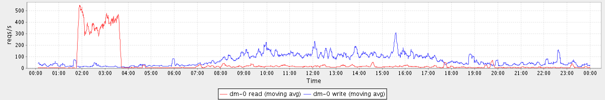 avg(dm-2 read) = 23.96 avg(dm-2 write) = 226.84