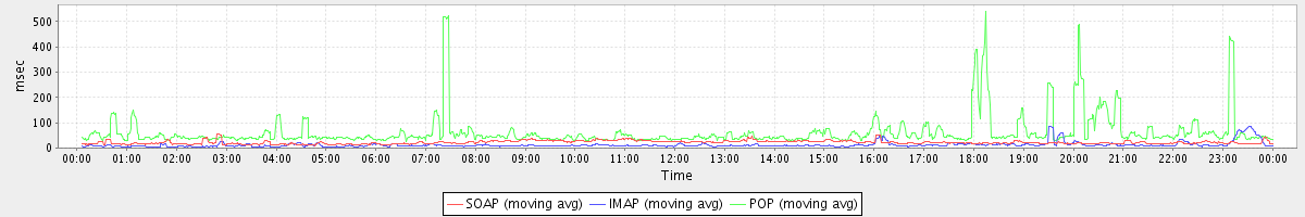 Host zm04.stanford.edu: Mailboxd: Response Time by Client Protocol