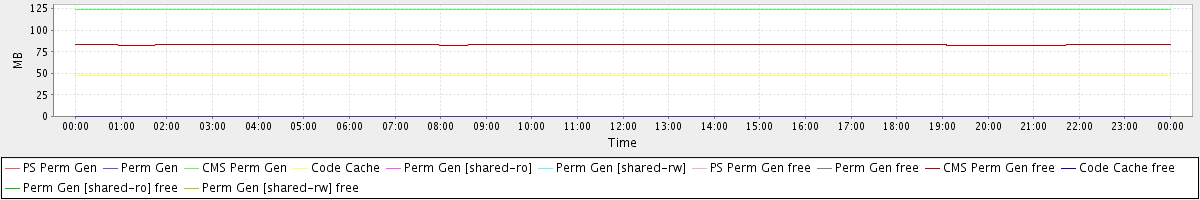 avg(PS Perm Gen) = 0.00 avg(Perm Gen) = 0.00 avg(CMS Perm Gen) = 124.14 avg(Code Cache) = 47.52 avg(Perm Gen [shared-ro]) = 0.00 avg(Perm Gen [shared-rw]) = 0.00 avg(PS Perm Gen free) = 0.00 avg(Perm Gen free) = 0.00 avg(CMS Perm Gen free) = 82.99 avg(Code Cache free) = 0.35 avg(Perm Gen [shared-ro] free) = 0.00 avg(Perm Gen [shared-rw] free) = 0.00