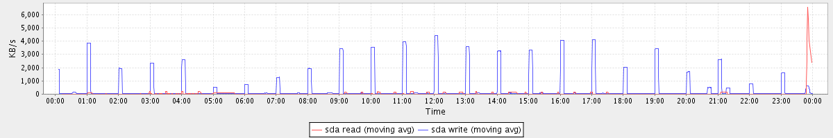 avg(sda read) = 20.90 avg(sda write) = 359.37