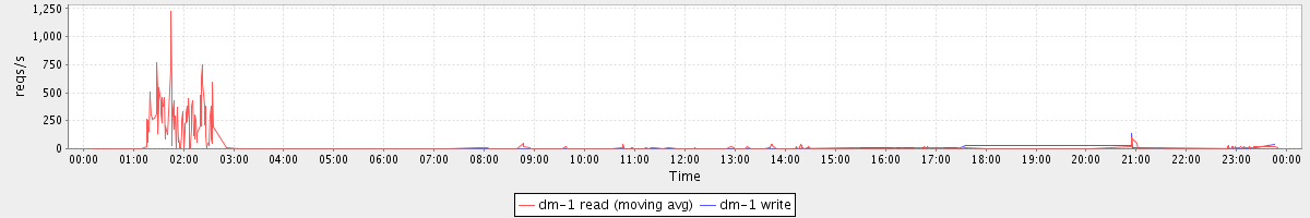 avg(dm-1 read) = 412.38 avg(dm-1 write) = 0.44