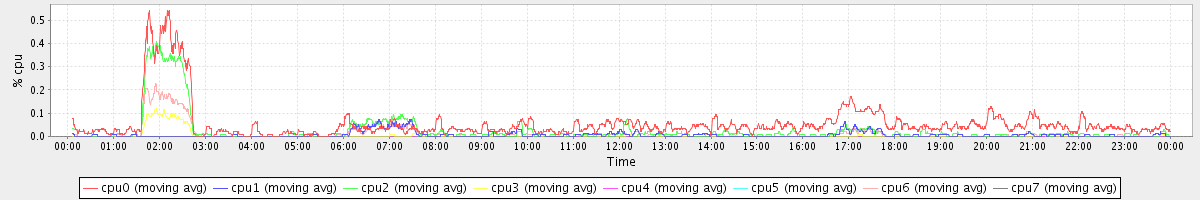avg(cpu0) = 0.06 avg(cpu1) = 0.01 avg(cpu2) = 0.02 avg(cpu3) = 0.00 avg(cpu4) = 0.00 avg(cpu5) = 0.00 avg(cpu6) = 0.01 avg(cpu7) = 0.00