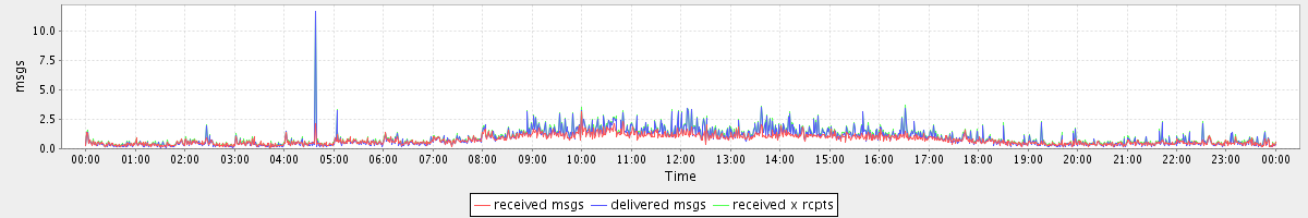 avg(received msgs) = 0.74 avg(delivered msgs) = 0.87 avg(received x rcpts) = 0.96