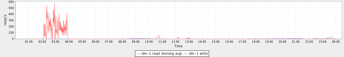 avg(dm-1 read) = 597.88 avg(dm-1 write) = 0.29