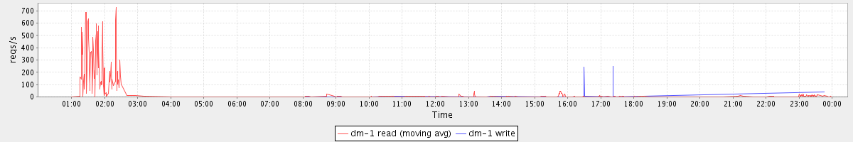 avg(dm-0 read) = 689.62 avg(dm-0 write) = 209.09