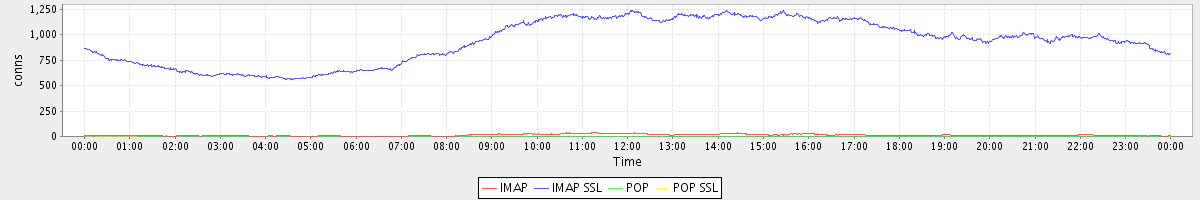 avg(IMAP) = 12.65 avg(IMAP SSL) = 934.67 avg(POP) = 0.20 avg(POP SSL) = 2.62