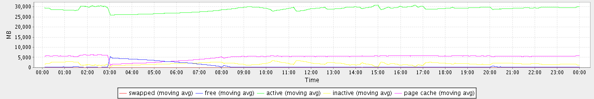avg(swapped) = 0.25 avg(free) = 790.44 avg(active) = 28839.24 avg(inactive) = 1863.37 avg(page cache) = 5110.72
