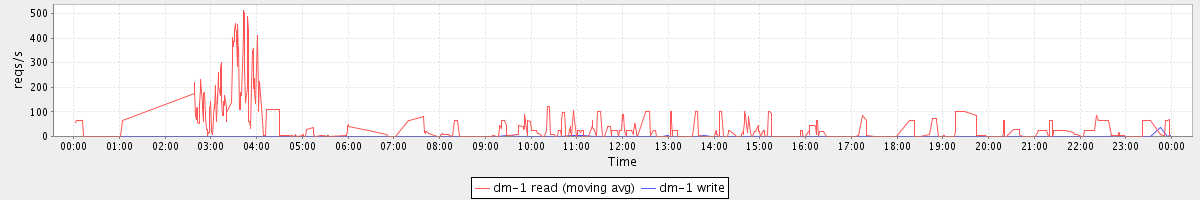 avg(dm-1 read) = 11.73 avg(dm-1 write) = 0.05