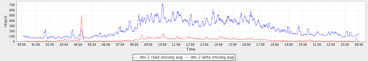 avg(dm-0 read) = 1088.05 avg(dm-0 write) = 305.39