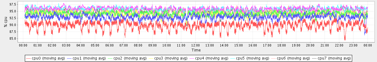avg(cpu0) = 89.76 avg(cpu1) = 92.86 avg(cpu2) = 94.10 avg(cpu3) = 93.81 avg(cpu4) = 95.85 avg(cpu5) = 95.82 avg(cpu6) = 95.07 avg(cpu7) = 94.98
