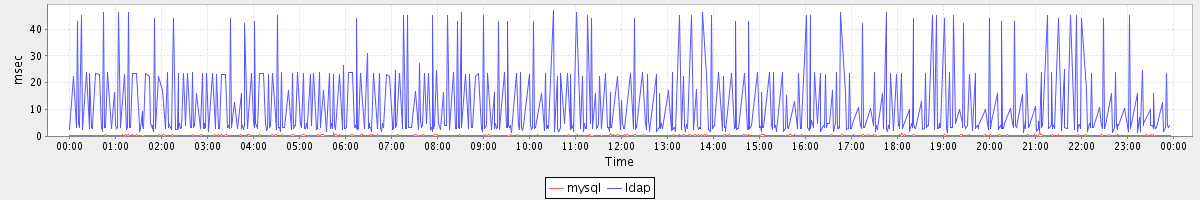 avg(mysql) = 0.23 avg(ldap) = 5.02