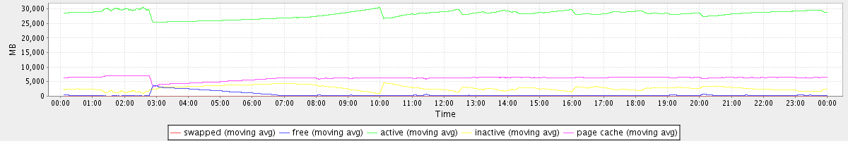 avg(swapped) = 0.26 avg(free) = 492.20 avg(active) = 28217.23 avg(inactive) = 2743.22 avg(page cache) = 6168.80